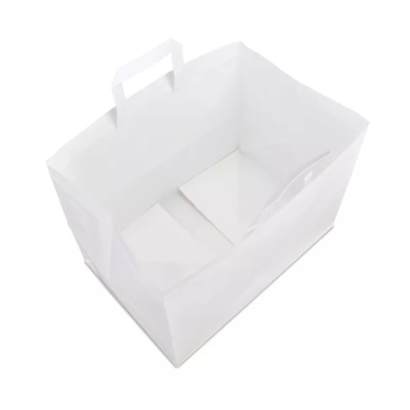 Крафт-пакет 35х23х25 білий з пласкими ручками “на винос”
